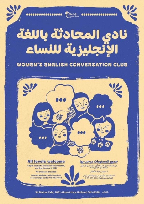 We need English Speaking Female Volunteers to speak English with wanting Arab women. Starting January 3rd from 6-8pm, and every first Saturday of the month after, we are hosting a conversation club to build relationships and provide for a need. We ask all first time volunteers to come at 5:30 so Tiffany can walk you through the schedule and help you feel comfortable. Please contact Tiffany if you plan to attend or have questions: 217-617-6822.